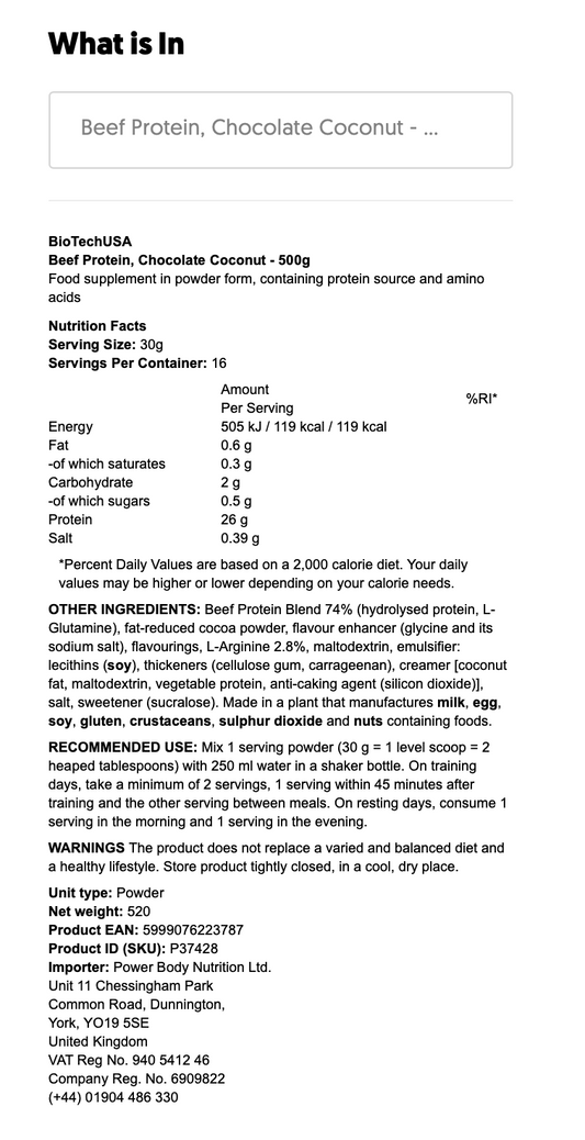 BioTechUSA Beef Protein - 1816 grams - Chocolate Coconut